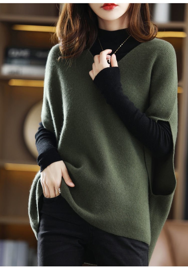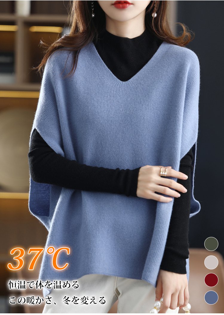 Vネックバットウィング・スリーブのウールベスト